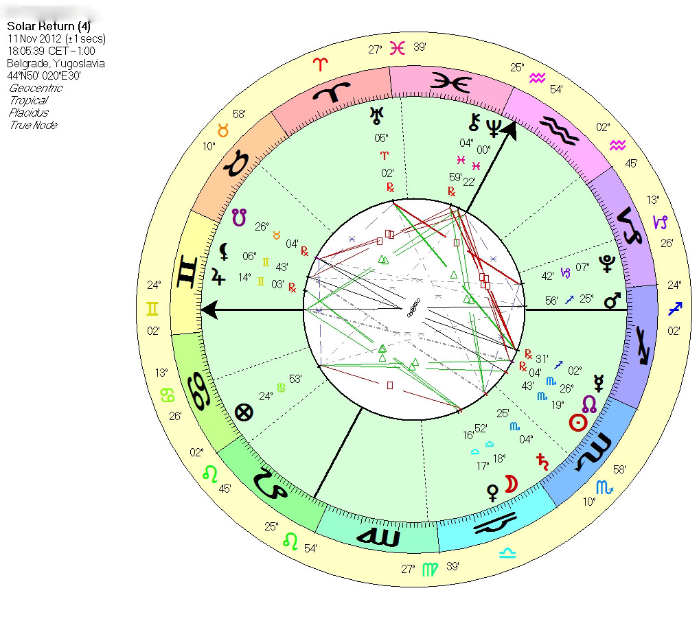 Sa mojim klijentima uradim kompletnu analizu horoskopa zivim razgovorom od sat i po vremena, ali im odkucam i kratak podsetnik naseg razgovora na odprilike 4 kucane strane. Evo primera jednog  podsetnik-horoskopa.